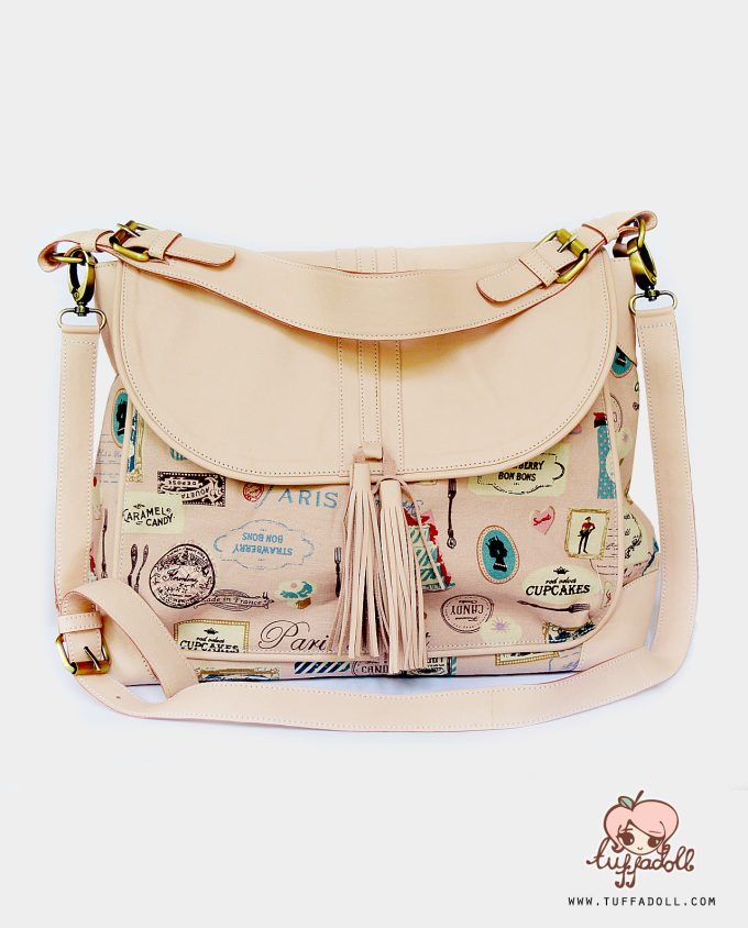 I’ve been obsessed with Japanese linen fabric for as long as I can remember. I’m in love with this cute design of cupcakes and sweets illustrated linen, and to be honest, I can’t believe how sweet this soft dusty pink leather shoulder bag turns out. This bag is suitable for any occasion, and interchangeable from shoulder bag to sling bag.